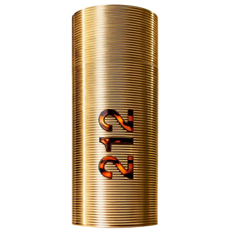 Флаконът на 212 Men Parfum запазва характерния цилиндричен силует на оригинала, но в нова златиста версия с релефна декорация, отразяваща парфюмната концентрация и луксозния характер на аромата.