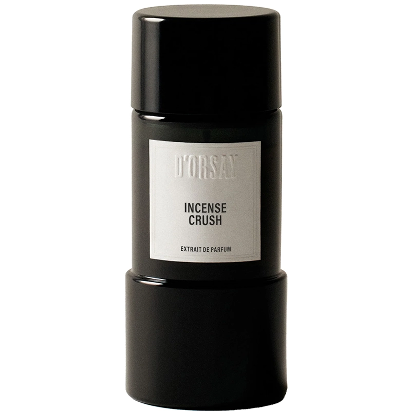 D'Orsay Incense Crush е тъмен, опушен и мистичен дървесен унисекс екстракт, представен през 2024 година от парфюмериста Жюлиен Раскине. Част от линията "Philtres d'Amour", този аромат с над 30% концентрация е посветен изцяло на тамяна. За създаването му са използвани най-висококачествени натурални съставки (LMR Naturals by IFF), за да се пресъздаде усещането за свещено пространство, изпълнено с дим и спомени. Ароматът се открива остро и леко горчиво, благодарение на интензивната, топла пикантност на карамфил и кардамон. В сърцевината се разгръща истинската магия на композицията – дълбок и богат тамян от Сомалия се преплита със суров, автентичен акорд на кожа. Това съчетание създава усещане за тъмна, ритуална елегантност. Финалът е изключително сух, земен и дървесен, изграден от дъбово дърво, чист кедър и опушен ветивер от Ява, които осигуряват феноменална трайност и мощен шлейф. Флаконът на Incense Crush е с изчистен, модерен и минималистичен дизайн. Той има цилиндрична форма и е изработен от плътно, непрозрачно черно стъкло, което подчертава мистериозния и наситен характер на екстракта. Дизайнът е завършен от стилна черна капачка, която следва изчистените линии на бутилката D'Orsay Incense Crush е аромат за ценители с опит. Идеален е за есента и зимата, както и за вечерни събития, когато искате да оставите мистериозно, смело и безапелационно дървесно-кожено впечатление.
