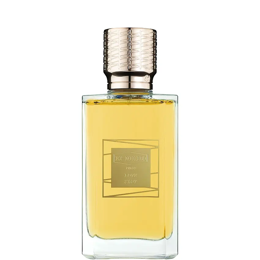 Ex Nihilo Love Shot е изискан унисекс парфюм, лансиран през 2016 година и създаден от парфюмериста Натали Грасия-Чето (Natalie Gracia-Cetto). Ароматът е модерна, дръзка и чувствена интерпретация на класическия шипър, вдъхновена от идеята за любов от пръв поглед – едновременно елегантна и изпълнена с неочаквана страст. Композицията се открива с комбинация от свеж бергамот и нежен божур, чиято флорална мекота е леко „ужилена“ от пикантния розов пипер. В сърцевината се разгръща сочната, леко тръпчива сладост на малина, която придава модерен и пристрастяващ плодов характер, балансиран от класически жасмин и земен акцент от пачули. Финалът е топъл и чувствен, като мекият, велурен акорд на кожа се преплита с кадифена ванилия и топъл мускус, а ветиверът добавя фина, суха дървесна нотка за елегантен и дълготраен завършек. Флаконът следва емблематичния за марката Ex Nihilo дизайн – тежка стъклена бутилка с изчистени, архитектурни линии, увенчана с луксозна, осмоъгълна капачка в златист цвят, вдъхновена от стила Ар Деко. Минималистичната естетика подчертава модерния и луксозен характер на аромата. Ex Nihilo Love Shot е аромат за ценители, които търсят смела и съвременна интерпретация на класическия шипър, съчетаваща елегантност с неочаквана плодова сладост и чувственост. Идеален е за моментите, в които искате да оставите незабравимо впечатление. Връхни нотки: бергамот, розов пипер, божур