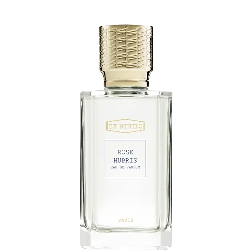 Ex Nihilo Rose Hubris е луксозен унисекс парфюм, лансиран през 2014 година. Създаден като почит към кралицата на цветята, този аромат е пищна и многопластова интерпретация на майската роза, улавяйки всяка нейна страна – от свежестта до наситената й сладост. Композицията се открива с неочаквана комбинация от сочно личи и пикантен сминдух, преминава през пищно сърце от кадифена майска роза, подсилена с топъл лабданум, и завършва с класически шипров финал. Влажният дъбов мъх, тъмното пачули и чувственият мускус създават дълготраен и аристократичен шлейф. Флаконът следва емблематичния за марката Ex Nihilo дизайн – тежка стъклена бутилка с изчистени, архитектурни линии, увенчана с луксозна, осмоъгълна капачка в златист цвят, вдъхновена от стила Ар Деко. Минималистичната естетика подчертава модерния и луксозен характер на аромата. Ex Nihilo Rose Hubris е аромат за ценители на пищни и модерни шипрови аромати с доминираща роза. Идеален е за специални поводи, когато искате да оставите впечатление за лукс и вечна елегантност. Връхни нотки: личи, сминдух