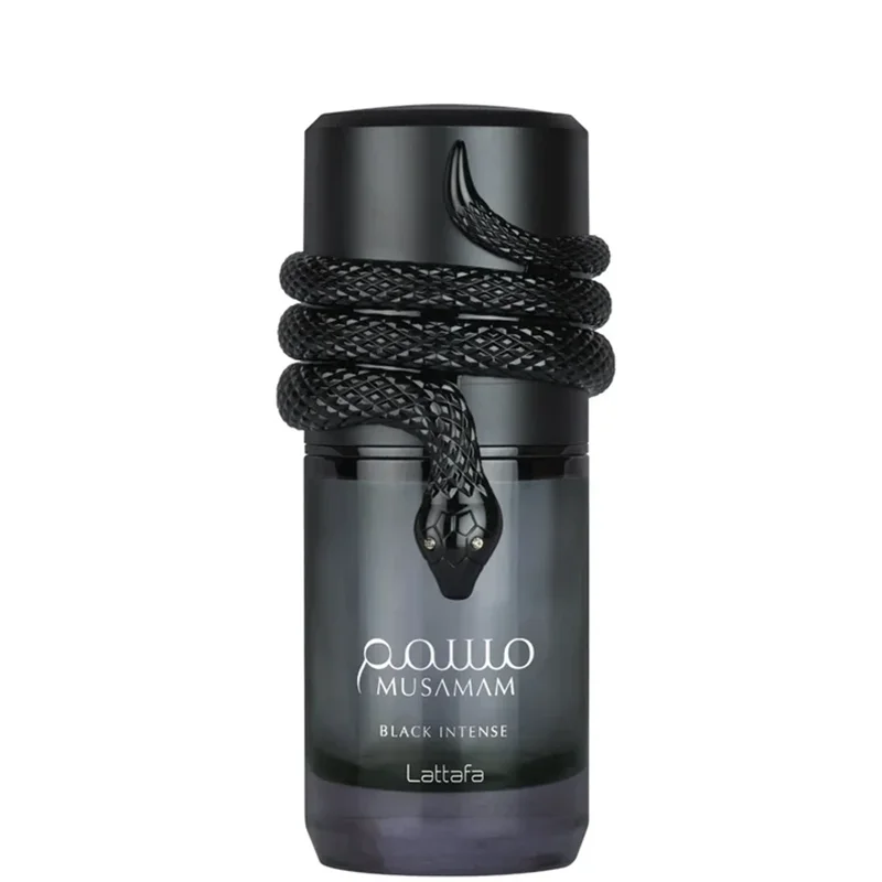 Lattafa Musamam Black Intense е смел унисекс парфюм, лансиран през 2025 година и създаден от звездния парфюмерист Жорди Фернандес (Jordi Fernández). Ароматът е модерна и наситена интерпретация на класическите фужерни композиции, създадена за мъже и жени, които търсят силно, ароматно и запомнящо се ухание с тъмен и мистериозен характер.