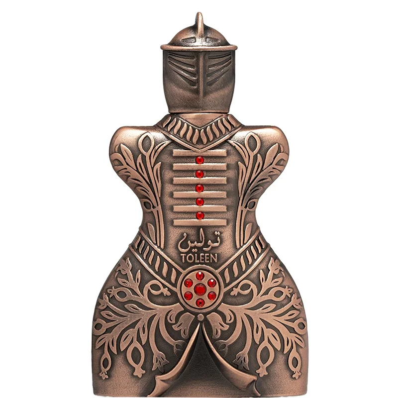 Lattafa Niche Emarati Toleen е модерен унисекс парфюм, лансиран през 2024 година, който представлява сияйна и динамична композиция, балансираща между пикантна свежест, деликатна сладост и топла, чувствена основа. Ароматът се открива с ярък и енергичен старт, в който класическата роза е освежена от пикантния, искрящ джинджифил и сочната, сладка круша. В сърцевината се разгръща модерният характер на парфюма, където доминира чистата, леко солена и минерална нотка на амброксан, балансирана от слънчевия портокалов цвят. Финалът е топъл и обгръщащ, като златният кехлибар и кадифеният мускус създават мек, чувствен и дълготраен шлейф. Флаконът е част от луксозната колекция Niche Emarati. Масивната стъклена бутилка има текстурирана, кристална повърхност, а уникалната, скулптурирана метална капачка подчертава премиум характера на аромата. Със своя сияен и енергичен профил, Lattafa Toleen е универсален избор, перфектен за ежедневно носене през всички сезони, като оставя впечатление за модерен стил и увереност. Връхни нотки: роза, джинджифил, круша