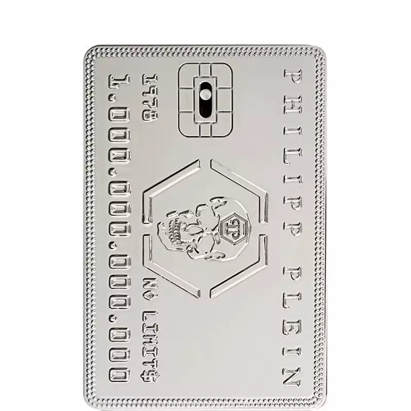 Флаконът на No Limit$ Platinum следва провокативния дизайн на колекцията – във форма на кредитна карта, символизираща безкрайни възможности и успех. В тази версия корпусът е решен в платинен нюанс със сребристи и метални акценти, които подчертават модерната и дръзка концепция.